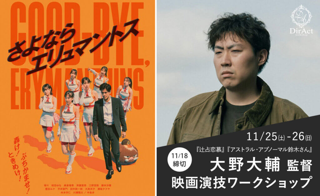 11月25(土)-26(日) 2日間 大野大輔 監督ワークショップ 現在公開中の『さよならエリュマントス』や『辻占恋慕』、『アストラル・アブノーマル鈴木さん』(松本穂香主演)、『ウルフなシッシー』の大野大輔監督による映画 […]