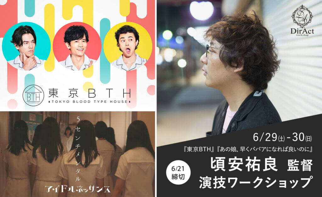 6月29(土)-30(日) 2日間 頃安祐良 監督ワークショップ 稲垣吾郎主演のドラマ『東京BTH〜TOKYO BLOOD TYPE HOUSE〜』や、田辺・弁慶映画祭グランプリの『あの娘、早くババアになればいいのに』の […]