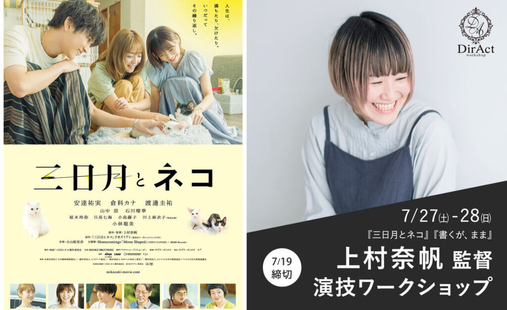 7月27(土)-28(日) 2日間 上村奈帆 監督 ワークショップ 安達祐実、倉科カナ、渡邊圭祐主演『三日月とネコ』や、MOOSIC LAB2018観客賞/最優秀女優賞の『書くが、まま』の 上村奈帆 監督による映画演技ワ […]